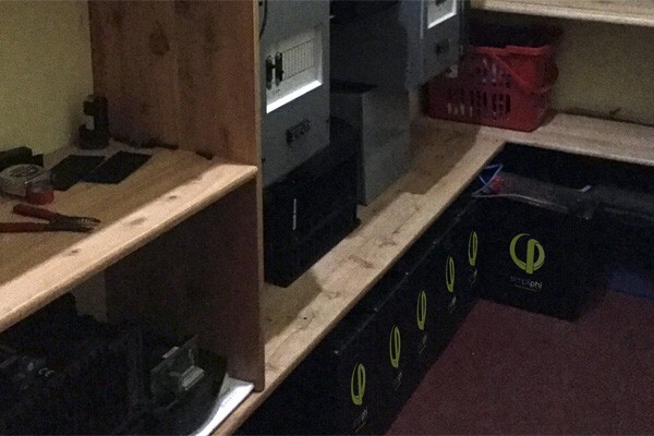 The system currently provides 20.4kWh of power and consists of six PHI 3.4 48V batteries and three Outback VFXR 3048E inverters.